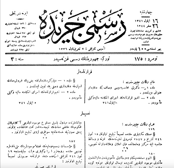 Memurini maliyenin vukuf ve mümaresi ilmiyelerini ve tecrübelerini tezyid etmek ve muktedir mal memuru yetiştirmek gayesile senei sabıkada Ankarada küşad edilmiş olan maliye tatbikat mektebi alisi için maliye vekaleti celilesince tanzim ve berayıtasdik tevdi edilmiş olan merbut talimatnamenin mevkii meriyete vazı, vekalet müşarünileyhanın 24/Ağustos/314 tarih ve memurin müdiriyeti 5669 numorolu tezkeresile vuku bulan teklif üzerine İcra Vekilleri Heyetinin 16/Eylül/341 tarihli içtimaında tasvip ve kabul olunmuştur. 16/Eylül/341
